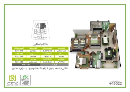 شقة 136 م